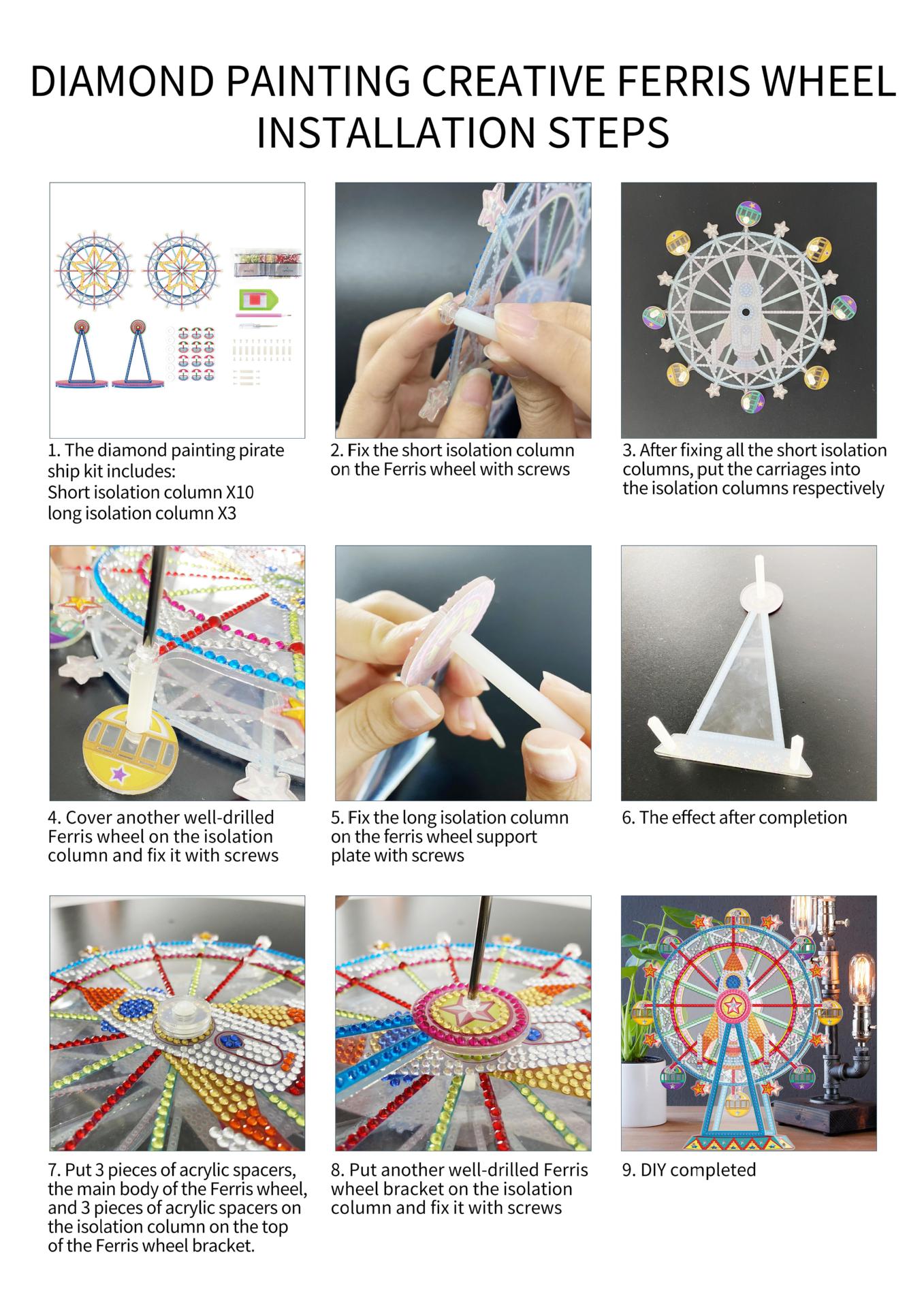 Manufacturing steps of DIY diamond drawing ferris wheel: