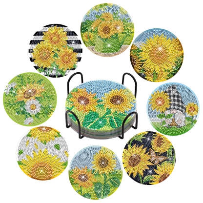 8Pcs Sunflower Diamond Painting Coasters with Holder