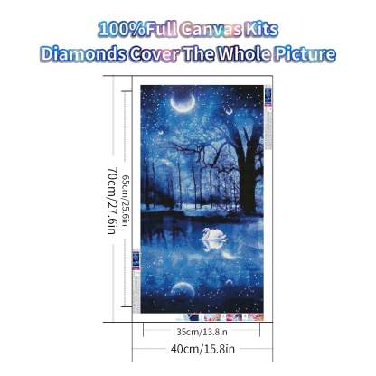 Moon Tree Swan - Full Round Diamond Painting - 70x40cm